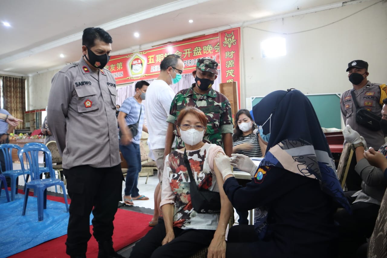Secara virtual, Percepatan Vaksinasi yang berlokasi di Yayasan Sosial Mojokerto Langgeng Sentosa Jl. Yos Sudarso No. 09 Kel. Mentikan Kec. Prajuritkulon Kota Mojokerto, ditinjau langsung Kapolresta Mojokerto namun diwakili wakapolres KOMPOL Dr. Sarwo Waskito, S.Sos., S.H., M.Hum., M.M. didampingi Kapolsek Prajuritkulon, Kasat Binmas, Danramil Prajuritkulon, Kasi Humas, Kasie Propam, Kasie TIK, Kasi Dokkes, dan Biksu Bante Sila selaku Tokoh Agama Budha Mojokerto