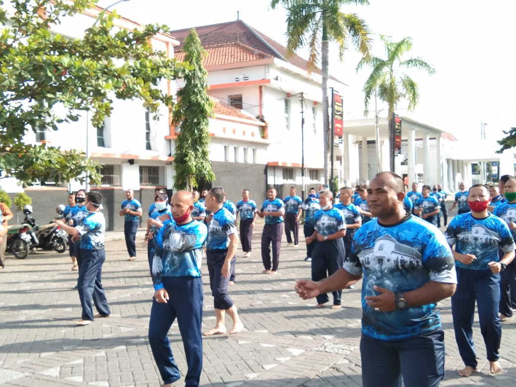MASPOLIN || TEGAL – Komandan Pangkalan TNI AL Tegal, Lantamal V, Koarmada ll Letkol Mar Ridwan Azis, M.Tr. Hanla., CHRMP. beserta Prajurit, Aparatur Sipil Negara Mako Lanal Tegal dan Masyarakat Sekitar lokasi melaksanakan Senam Kesegaran Jasmani 88 bersama yang bertempat di lapangan Kantor Pos dan Giro jalan pemuda Kota Tegal.