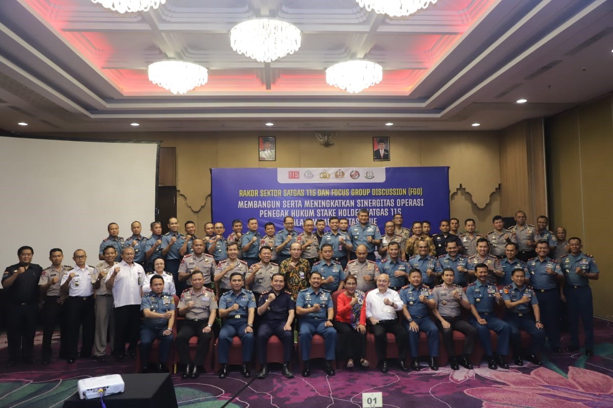 Rakor Satgas 115 dan FGD yang digelar sejak kemarin hingga hari ini dibuka Menteri Kelautan dan Perikanan Republik Indonesia sebagai Komandan Satgas 115, Susi Pudjiastuti.