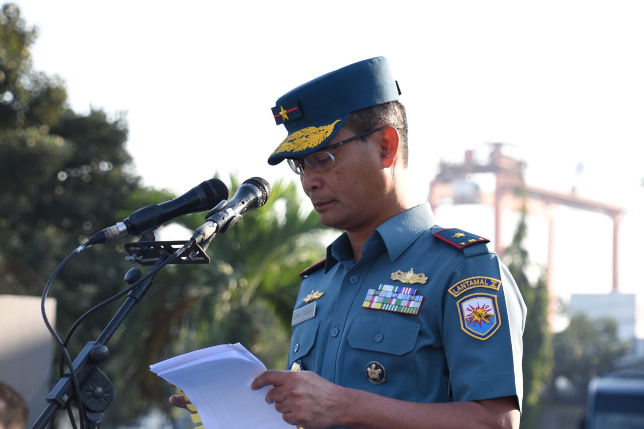 Amanat / Pengarahan pemimpin Apel Tugas pokok Lantamal V menyelenggarakan dukungan temour, logistik. Dukungan administrasi maupun dukungan khusus bagi unsur-unsur TNI AL (Kapal pesud dan marinir) untuk melaksanakan operasi dan melaksanakan pemberdayaan Potmar dengan memanfaatkan sarana dan prasarana yang memiliki pangkalan itu sendiri maupun instansi yang terkait diwilayahnya.