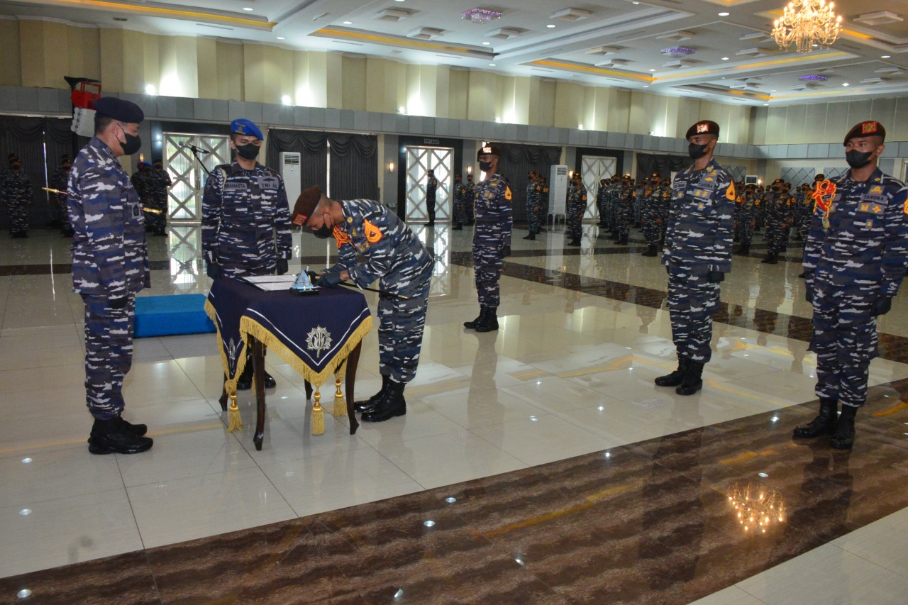 MASPOLIN || AAL, Surabaya – Gubernur Akademi Angkatan Laut (Gubernur AAL) Laksamana Muda TNI Tunggul Suropati, S.E., M.Tr (Han) memimpin acara Serah Terima Jabatan (Sertijab) Komandan Resimen Korps Taruna (Danmenkortar) dan Tambur Mayor Genderang Suling Gita Jala Taruna AAL di Gedung Mas Pardi, Kesatrian AAL, Bumimoro, Surabaya, Jumat (26/3).