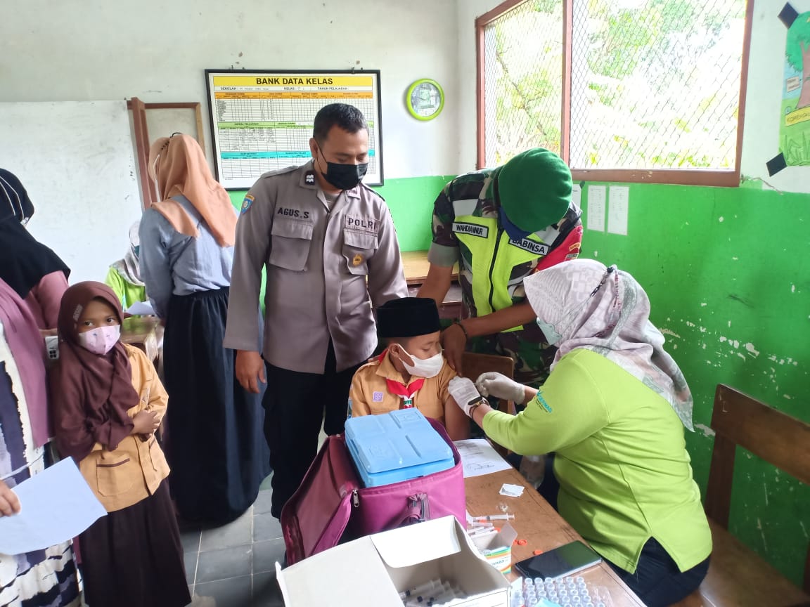 Apa yang dilakukan Aipda Agus dan Serda Wahdianur itupun menuai pujian dari beberapa orang tua wali yang ikut mendampingi anak pada kegiatan vaksinasi tersebut.