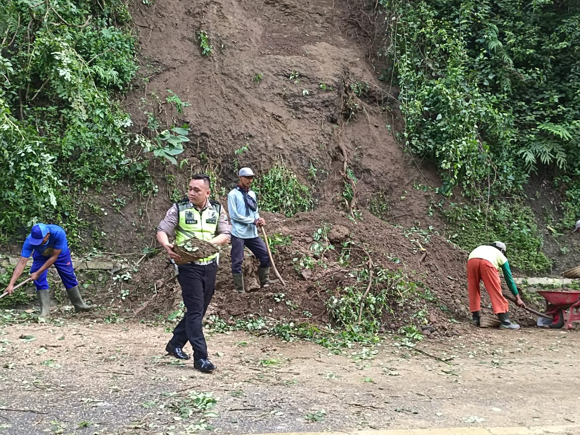 “Tanah longsor yang terjadi memang tidak terlalu besar. Namun karena berada di jalan nasional dan material tanah juga menutupi hampir separuh badan jalan sehingga menggangu arus lalu lintas dan berpotensi menjadi penyebab macet maupun kecelakaan lalu lintas.” Ujar AKP Yudiyono.