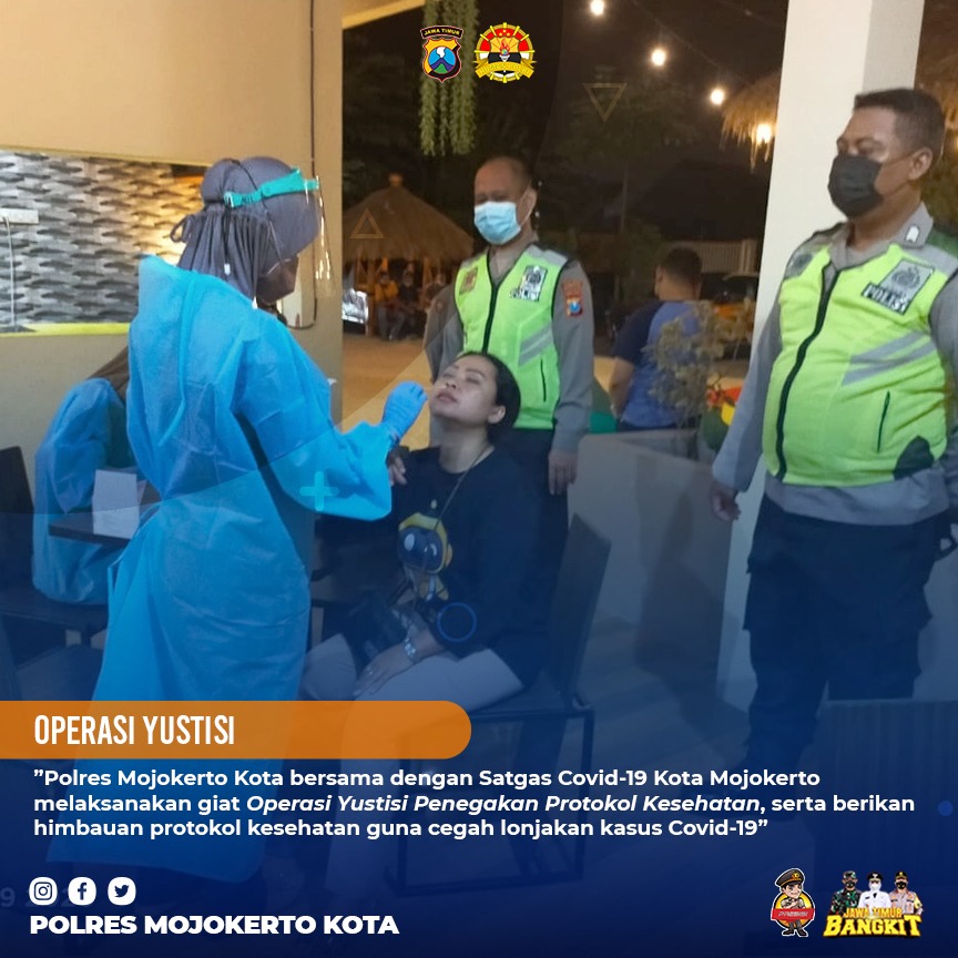 “Dalam Operasi Yustisi Kali Ini Petugas Melakukan Swab Antigen Kepada Pengunjung Cafe Diwilayah Hukum Polsek Prajuritkulon Polresta Mojokerto, Total 10 Sampel Swab Antigen Dengan Hasil Negatif”. Tambah Kapolsek