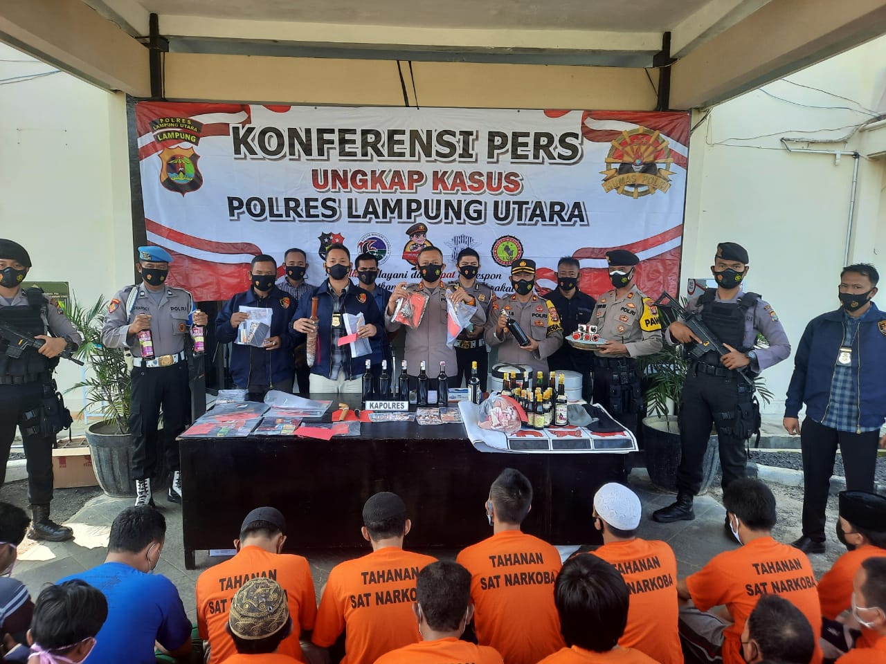 “Adapun dengan rincian preman 2 kasus 2 tersangka, curas 1 kasus 1 tersangka, curat 8 kasus 10 tersangka, curanmor 1 kasus 1 tersangka, senpi (penyerahan masyarakat) 1 kasus, sajam 10 kasus 12 tersangka, prostitusi 1 kasus 5 tersangka, perjudian 11 kasus 11 tersangka, narkoba 4 kasus 8 tersangka, miras 8 kasus dan kejahatan lainnya 3 kasus 2 tersangka,” kata AKBP Bambang Yudho, didampingi Kabag Ops Kompol Hadi Sutomo dan Kasat Reskrim AKP Gigih, saat menggelar konferensi pers di Mapolres Lampung Utara, Kamis (04/03/2021).