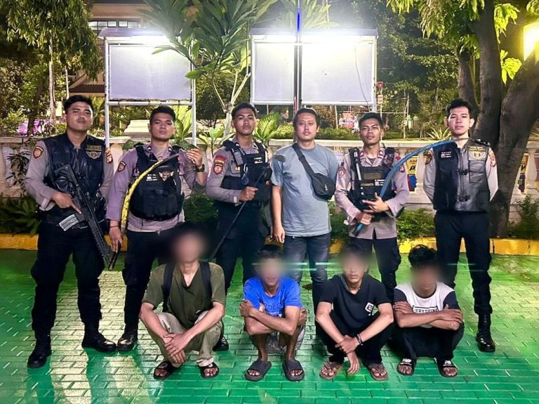 Menindaklanjuti informasi tersebut, petugas patroli segera melakukan pengejaran dan berhasil mengamankan empat remaja beserta empat buah senjata tajam jenis celurit yang mereka bawa.