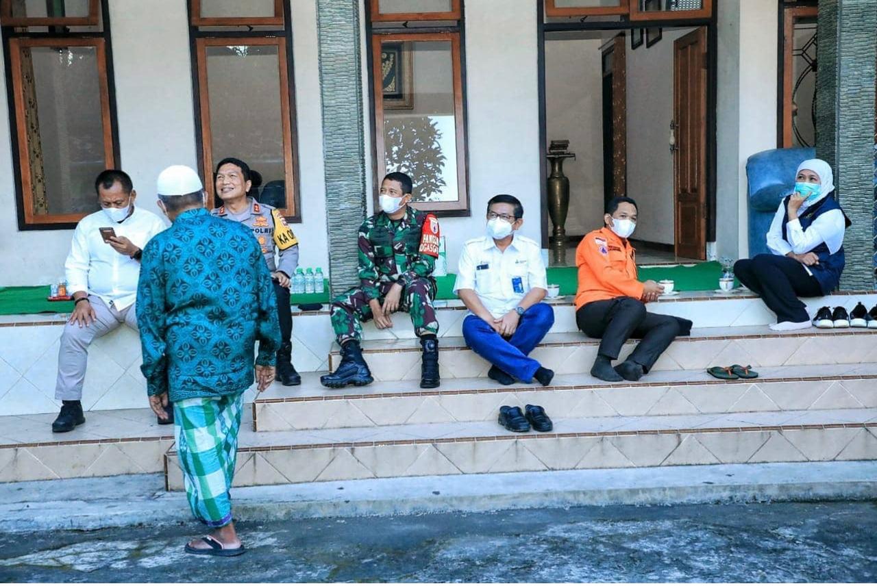 MASPOLIN || Lumajang – Tinjauan lokasi terdampak gempa bumi di Lumajang dan Malang, Forkopimda Jatim lakukan koordinasi di emperan teras rumah Kyai Hasan Said, Mantan ketua NU pronojiwo. Sekolahan TK diniyah, Taman Ayu Pronojiwo Lumajang. Minggu (11/4/2021).