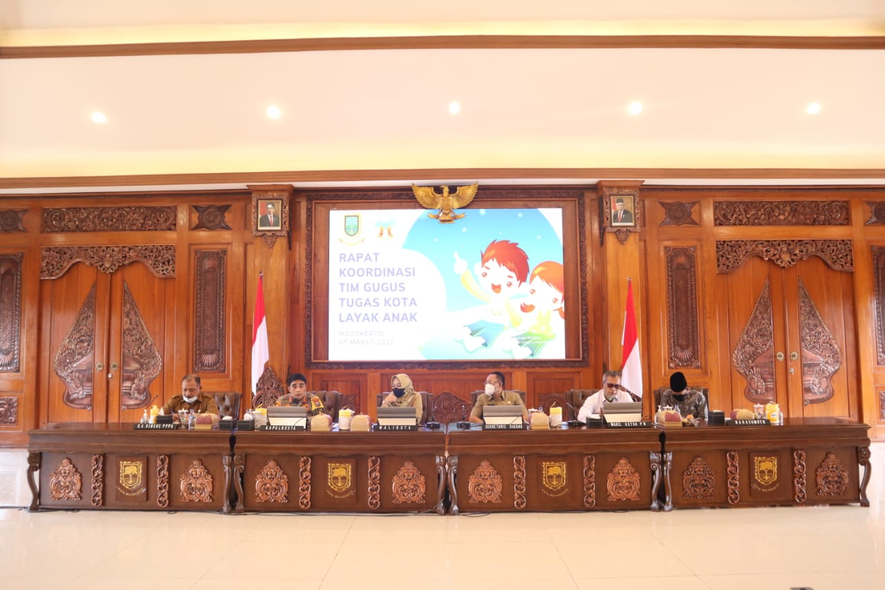 maspolin.id, Mojokerto – Targetkan raih KLA Nindya, Kapolresta Mojokerto AKBP Rofiq Ripto Himawan mengikuti Rapat koordinasi tim gugus tugas Kota Layak Anak tahun 2022 di Gedung Shaba Mandala Kidra Bersama Walikota Mojokerto Hj. Ika Puspitasari, SE. dan menghadirkan narasumber Fasilitator dan Evaluator KLA Kementrian Nanang Abdul Chana., S. Sos. Senin (07/03/22).
