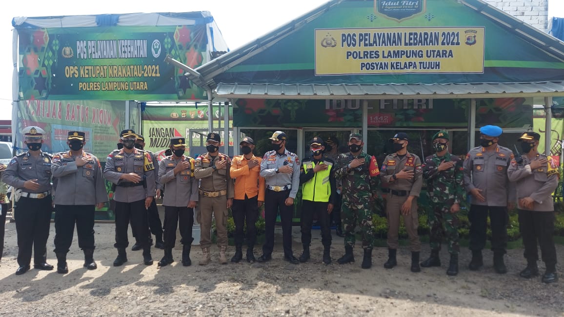 Waka Polda Lampung didampingi oleh para Pejabat Utama Polda Lampung mengunjungi pos pengamanan Simpang Propau yang ada di Kabupaten Lampung Utara.