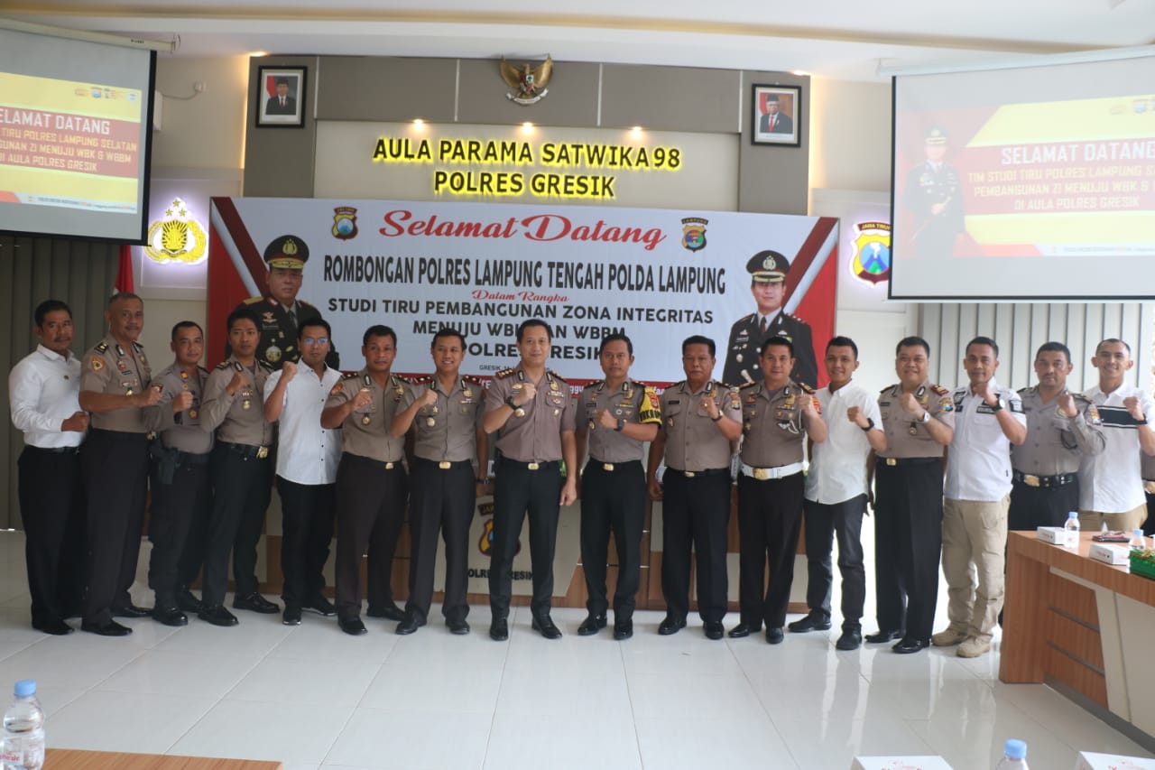“Kami keluarga besar Polres Gresik, Selamat datang kepada Rombongan Polres Lampung Tengah ke Polres Gresik Dalam Rangka Study Tiru Pembangunan Zona Integritas Menuju WBK dan WBBM”,” ungkap Kapolres Gresik AKBP Kusworo Wibowo.