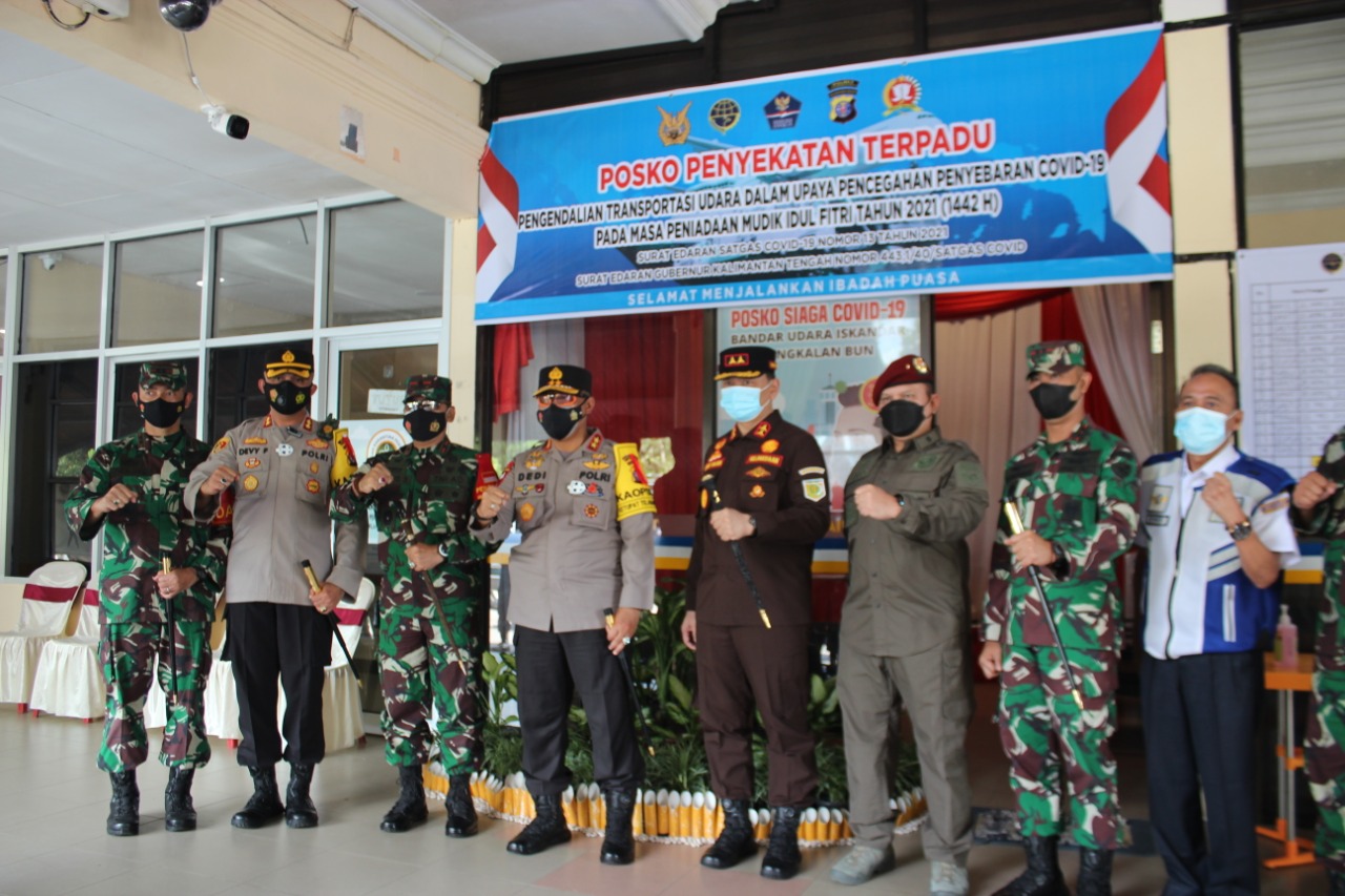 Kapolda Kalteng didampingi Danrem 102 Panju Panjung, Kajati Kalteng dan Kabinda Kalteng, mengecek posko penyekatan Pelabuhan Panglima Utar Kumai, posko penyekatan Bandara Lanud Iskandar dan pos pengamanan Simpang Runtu Kecamatan Pangkalan Lada.