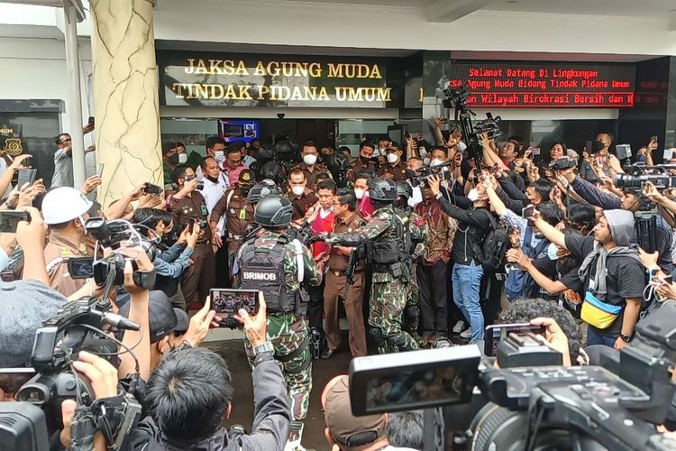 Ferdy Sambo keluar dari Gedung Jaksa Agung Muda Tindak Pidana Umum (Jampidum) pada Rabu (5/10/2022) pukul 12.59 WIB setelah mengikuti acara penyerahan berkas perkara tahap kedua kasus Brigadir J.