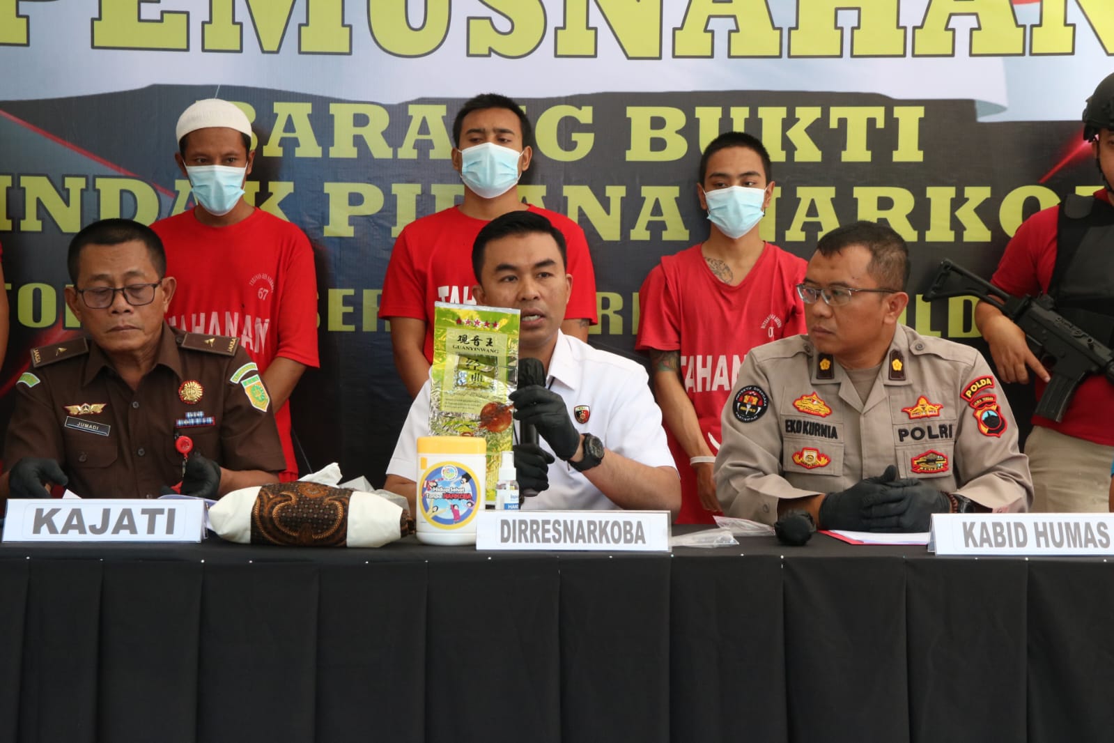 “ Kegiatan pemusnahan ini terkait Barang Bukti hasil penindakan yang telah dilakukan sebelumnya, untuk barang bukti Sabu kita telah melakukan koordinasi dengan Labfor maupun Bareskrim ada kemiripan dengan jaringan Fredi Pratama namun tentunya kita akan masih dalami lagi,” ujar Kombes Pol M Anwar Nasir.