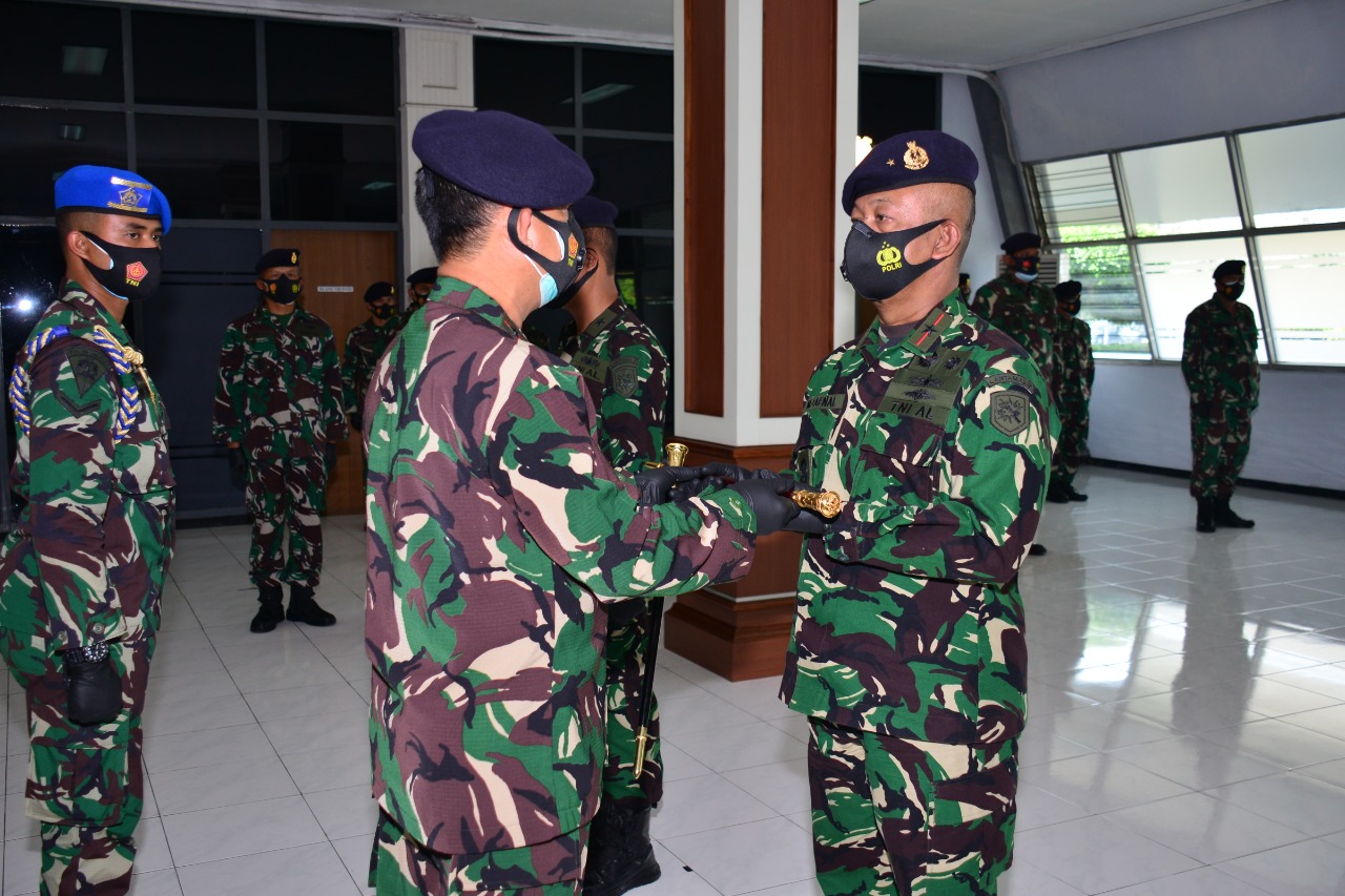MASPOLIN || SURABAYA – Tongkat Komando Pangkalan Utama TNI AL (Lantamal) V Surabaya, resmi diserahterimakan dari Laksamana Pertama (Laksma) TNI Tedjo Sukmono, S.H., CHRMP., kepada penggantinya Laksma TNI Mohamad Zaenal, S.E., M.M., M.Soc.Sc. Serah terima jabatan strategis ini, dipimpin oleh Panglima Koarmada II Laksamana Muda TNI I N.G. Sudihartawan, S.PI., M.M., bertempat di Markas Komando Lantamal V, Tanjung Perak, Surabaya Jawa Timur, pada (14/10).