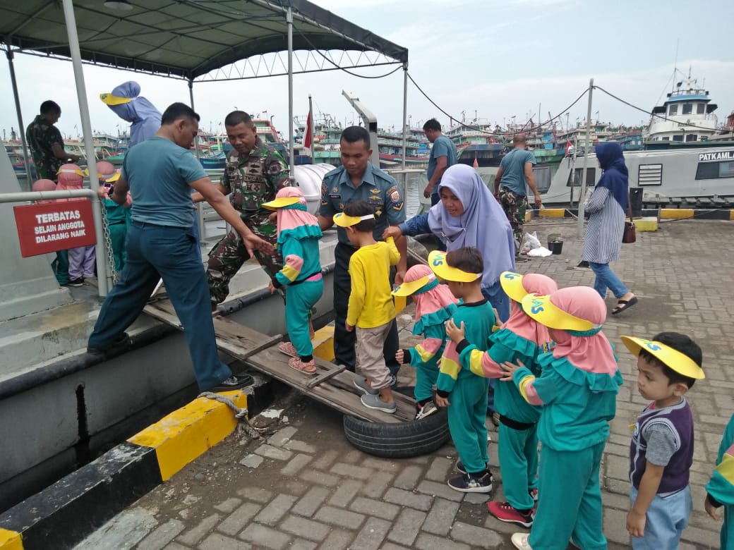 Pada kesempatan tersebut Serda Sugeng Prasetyo, juga mengajak keliling anak paud untuk mengenal lingkungan Mako Lanal dan naik ke KAL Maribaya yang dimiliki Lanal Tegal.