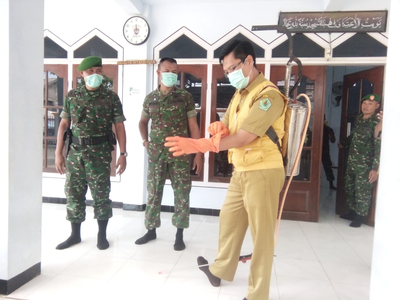 Letda Inf Asnan Sebagai Pjs Danramil 0826/02 Tlanakan, mengatakan Sosialisasi dan Himbauan terkait virus Corona (Covid-19), sudah kami sampaikan ke warga, sekarang waktunya kami melaksanakan penyemprotan di tempat yang biasa didatangi banyak orang.