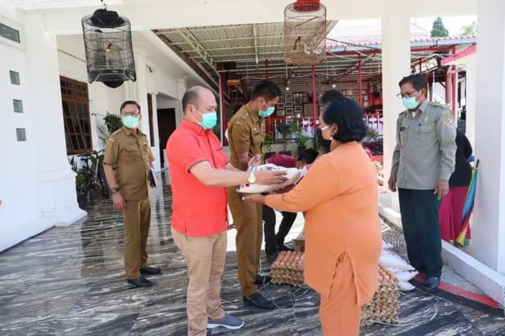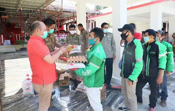 Tarutung, Maspolin.id—Bupati Tapanuli Utara Drs. Nikson Nababan, M. Si memberikan bantuan sembako secara simbolis kepada 267 warga yang terdampak perekonomiannya pada masa pandemi corona, bertempat di kediamannya Rumah Dinas Bupati, Tarutung (Selasa, 12/05/2020).