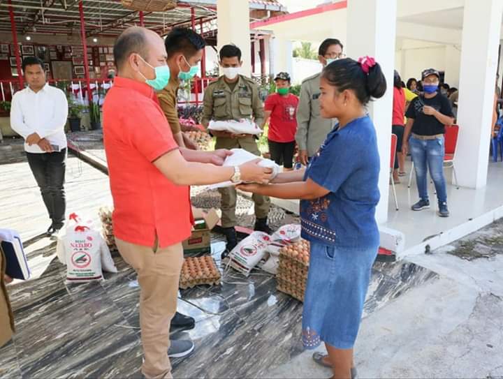 “Tetap semangat dan selalu jaga kesehatannya, wajib pakai masker dan tetap jaga jarak serta selalu hindari kerumunan. Semoga bantuan ini dapat membantu meringankan beban hidup pada masa corona itu. Sampaikan salam saya kepada warga kita yang tidak turut hadir pada kesempatan ini,” ucap Bupati seraya membagikan bantuan secara simbolis.