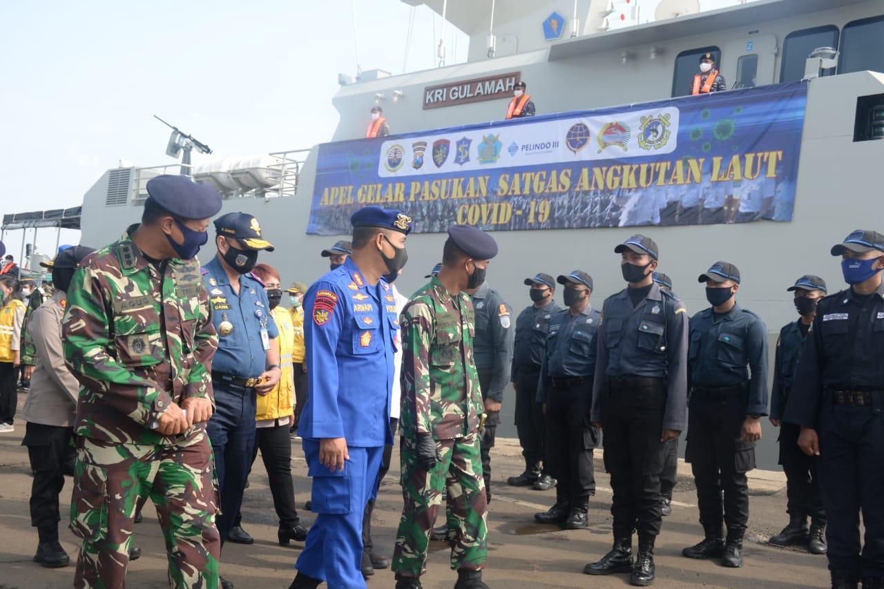 Pada pelaksanaan Apel Gelar Pasukan Satgas Angkutan Laut Covid-19 bertindak selaku Inspektur upacara Komandan Lantamal V Laksamana Pertama TNI Tedjo Sukmono, S.H., CHRMP., dan dihadiri Dir. Polair Polda Jatim, Ka. Polres Tg. Perak, CEO Pelindo III Regional Jatim, Ka. Syahbandar Tg Perak, Ka.KKP Juanda dan Tg. Perak, Ka. Otoritas Pelabuhan Tg. Perak, Wadan Lantamal V, Para Asisten dan Kasatker Lantamal V.