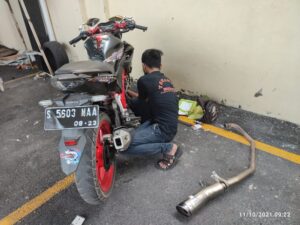 Maspolin.id, Mojokerto – Hasil razia dari Satlantas Polresta Mojokerto terkait knalpot brong dan kendaraan yang tidak sesuai Spektek, berlanjut lapangan Apel Polresta Mojokerto berubah menjadi bengkel motor dadakan, dari Puluhan pelanggar lalu lintas membongkar kendaraan dan melakukan penggantian sesuai standar pabrik.