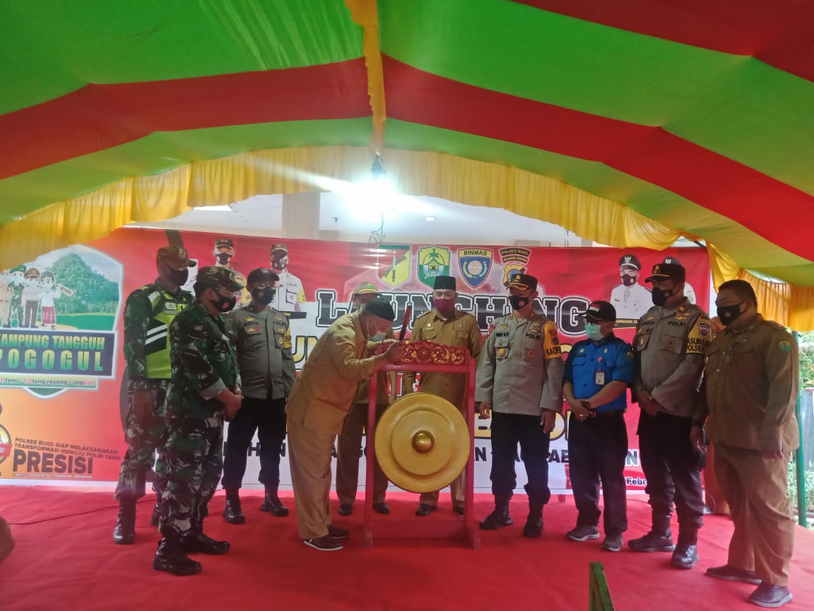 Pada kesempatan tersebut, Kapolres Buol AKBP Dieno Hendro Widodo, mengatakan pada saat selesai pengguntingan pita sebagai simbol peresmian ruangan posko pelayanan, bahwa pembentukan Kampung Tangguh Pogogul ini dilaksanakan untuk menciptakan kesadaran dan ketangguhan masyarakat dalam mencegah penyebaran Covid-19.
