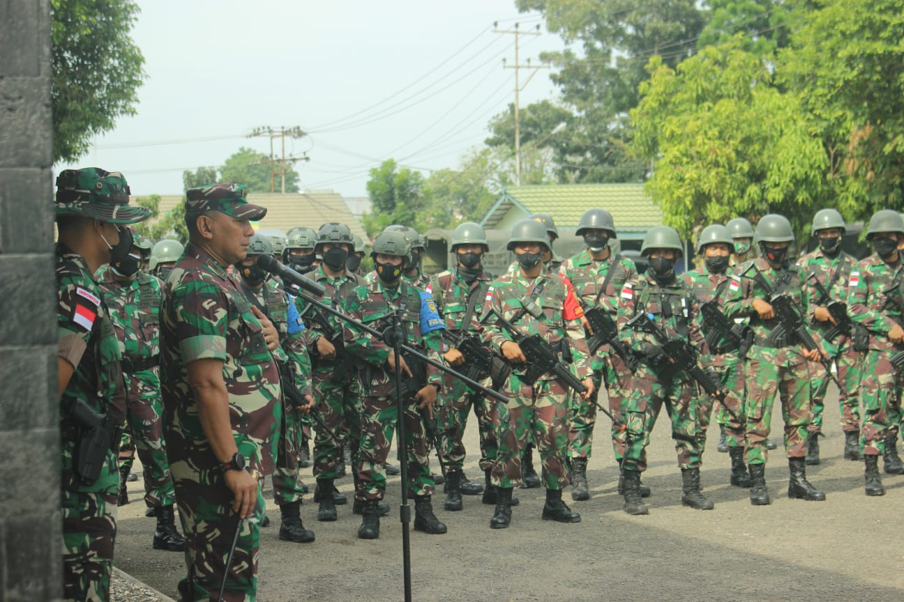 Jambi – Maspolin.id// Komandan Korem 042/Gapu Brigjen TNI M. Zulkifli, S.I.P., M.M melepas Anggota Yonif R 142/KJ ke daerah latihan Pratugas Pengamanan Daerah Rawan Papua di Kabupaten Rejang Lebong Prov. Bengkulu. Di Mayonif R 142/KJ, Senin 29/11/2021.