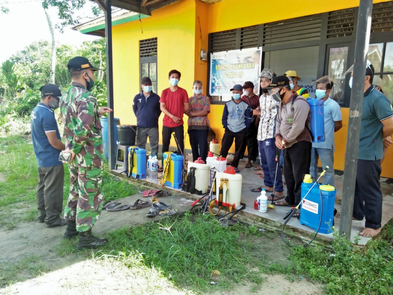 “Sebelum pelaksanaan penyemprotan disinfektan, Babinsa Sertu Seherdi menyampaikan tujuan dilaksanakannya penyemprotan disinfektan ini adalah sebagai langkah pencegahan penyebaran Virus Corona Disease tahun 2019, kita pakai istilah lebih baik mencegah daripada mengobati,” ucap Babinsa