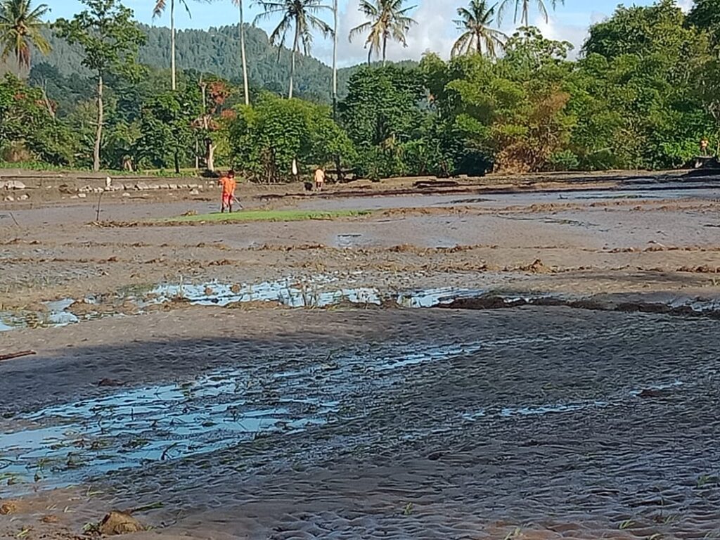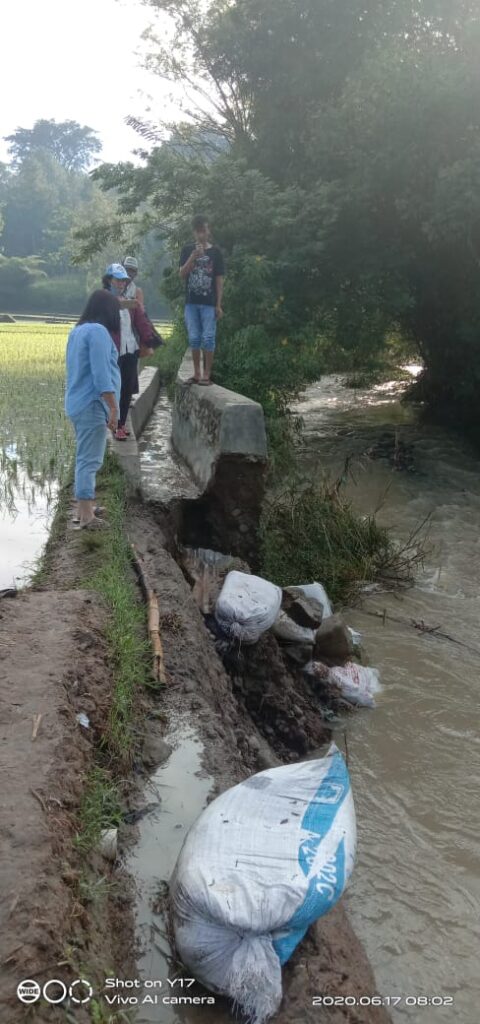 Dimana intensitas curah hujan yang sangat tinggi mengakibatkan meluapnya air sungai dimana debit air tersebut melampaui bibir Sungai hingga menggenangi lahan pertanian dan persawahan milik warga yang luas keseluruhan lebih kurang mencapai 8 Ha.