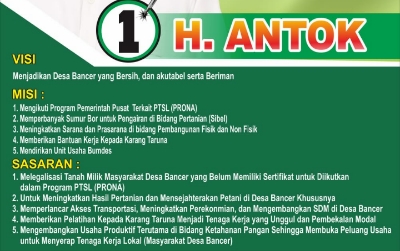 “Mudah mudahan dengan Visi Misi dan sasaran Pak H. Antok, Kedepannya Bisa Terwujud dan menjadikan Desa Bancer Yang maju dan berkembang di segala bidang, Pungkasnya.
