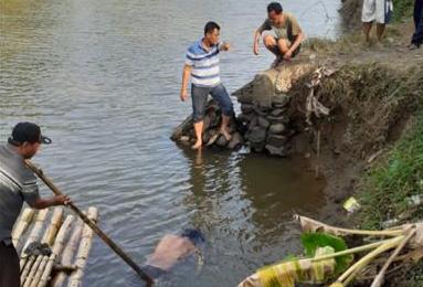 Mendapat laporan, anggota piket Polsek Kroya segera mendatangi TKP, dan dengan dibantu warga setempat langsung mengevakuasi jenazah ke tanggul sungai.