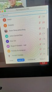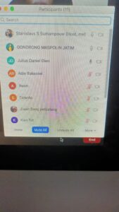 Hadir dalam rapat secara virtual, para Jurnalis Maspolin dari berbagai daerah di Indonesia, diantaranya Roger P Silalahi – Tabanan, Bali, Gus Gondrong – Bojonegoro, Jatim, Hermawan S – Cilacap, Jateng, Estanto – Cilacap, Jateng, Adie Rakasiwi – Depok, Jwa Barat, Frish H Silaban – Humbahas, Sumatra Utara, Imam S – Jawa Timur, Jiwan – Magelang, Jatim, Kian Tat – Jambi, Romi Sumampouw – Jakarta Timur, Julius D Dien – Timika, Papua, Joseph Paskalis – Ruteng, NTT dan S Stanley Sumampouw – Depok, Jawa Barat selaku Pimpinan Redaksi (Pimred) Maspolin.id.
