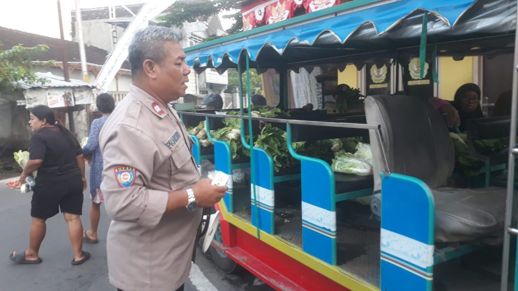 Setelah Aiptu Pramono selaku Bhabinkamtibmas Semanggi bersama dengan Pokdarkamtibmas belanja sayuran dan lauk pauk, selanjutnya hasil belanjaan tersebut dibawa keliling kampung dengan kereta kelinci.