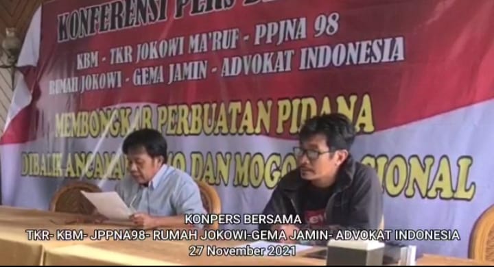 Hadir dalam konfrensi pers bersama pada Sabtu (27/12/2022) Bapak Manahara Sitinjak (Ketua Kesatuan Buruh Marhaenis, Yulianto Widirahardjo (Ketua Tim Kesehatan Relawan Jokowi Maruf, Suparji Ahmad (Ahli Hukum Pidana Universitas Al Azhar) dan Anto mewakili PPJNA 98, Aktivis 98, Perwakilan Advokat Indonesia Fungsioner Rumah Jokowi, serta Gerakan Masyarakat Jokowi Maruf.