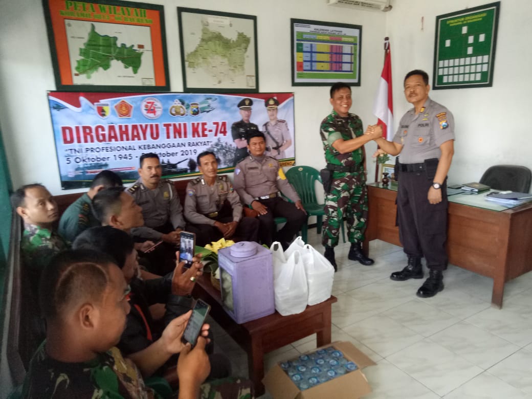 Bojonegoro,Maspolin.id – maspolin.id Memperingati Hari Ulang Tahun TNI ke 74, Polsek jajaran Polres Bojonegoro memberikan kejutan untuk anggota Koramil jajaran Kodim 0813/Bojonegoro. Kejutan tersebut atas perintah Kapolres Bojonegoro AKBP Ary Fadli kepada para Kapolsek Jajaran Polres Bojonegoro yang dilaksanakan pada hari Jum’at(4/10/2019).