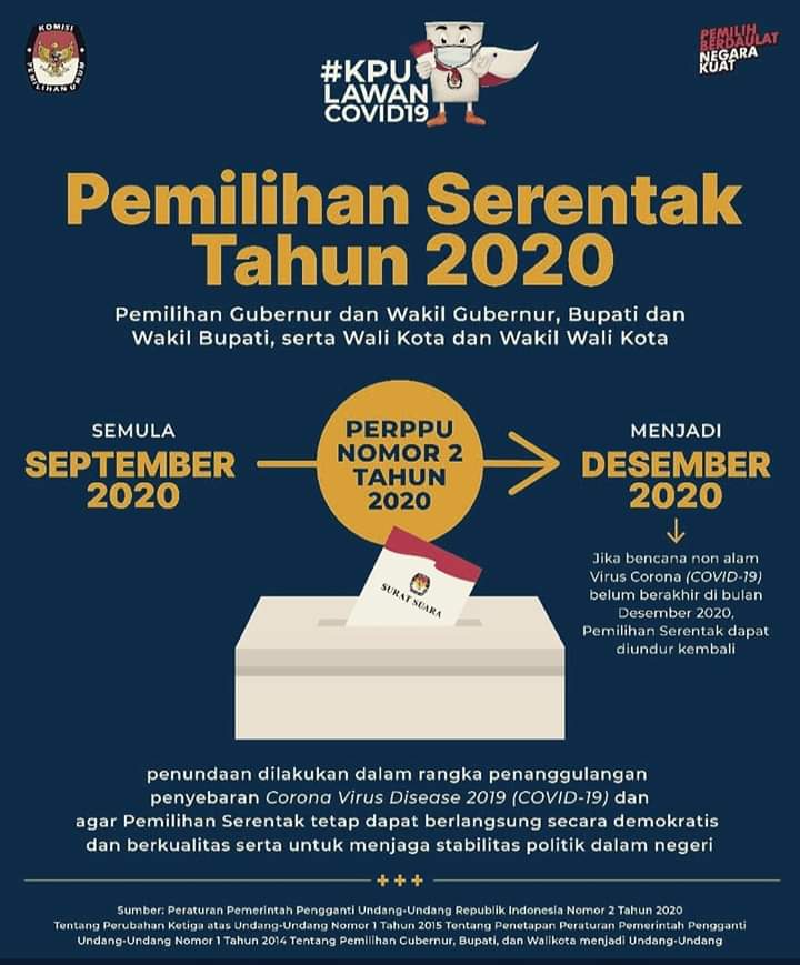 MASPOLIN || JAKARTA – Infografis perubahan waktu pemilihan pilkada serentak menjadi Desember 2020.