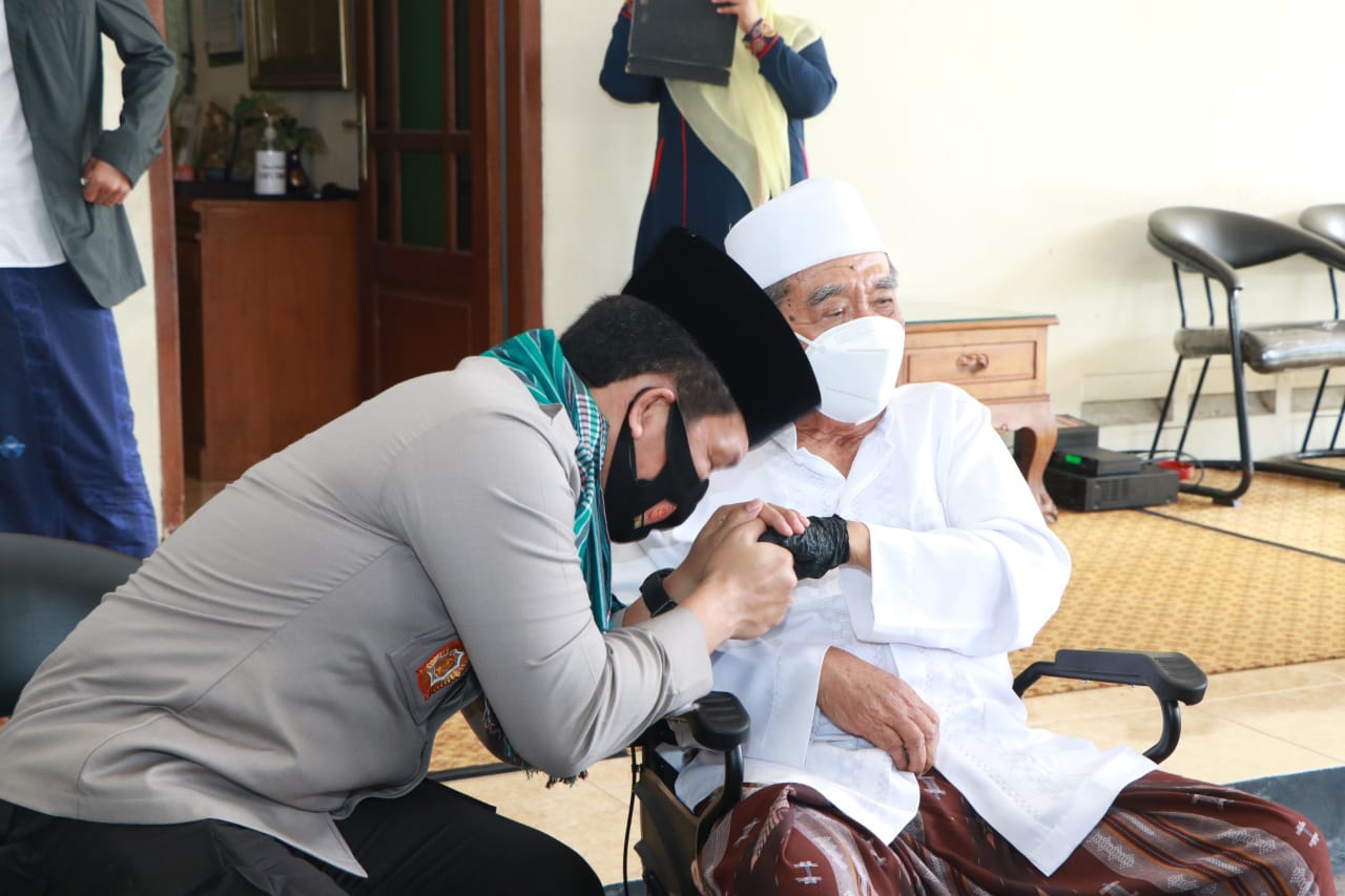 Sebagai bentuk rasa hormat kepada para Kyai, Kapolda Jatim lebih mendahulukan sowan ke kediaman Kyai sebelum melakukan kunjungan kerja di Polres Jajaran.