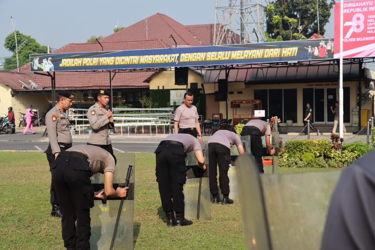 Bertempat di Lapangan Patih Gajah Mada Polresta Mojokerto, personil yang tergabung dalam Kompi Dalmas dalam kegaitan ini dilatih langsung oleh Kasat Samapta AKP Anang Leo Afera didampingi KBO Satsamapta IPDA Bachtiar.