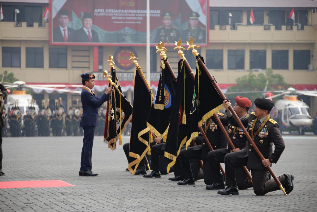 MABES POLRI – Maspolin.id|| Presiden Joko Widodo (Jokowi) memberikan anugerah tanda kehormatan Nugraha Sakanti kepada tujuh Satker Polri. Penghargaan itu diberikan Presiden Jokowi saat menghadiri apel gelar pasukan pengamanan sumpah dan janji presiden dan wakil presiden terpilih di Mako Brimob, Kelapa Dua, Depok, Senin (14/10/2024).