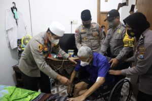 Kali ini sosok polisi yang dekat dengan ulama tersebut didampingi jajaran pejabat utama memberikan bantuan sosial berupa kursi roda kepada Kepada Bapak I Putu Laken, orang tua dari Aipda Yenny anggota Siwas Polresta Mojokerto yang berkebutuhan khusus di Perumahan Griya Permata Meri Kelurahan Meri, Kecamatan Kranggan, Kota Mojokerto