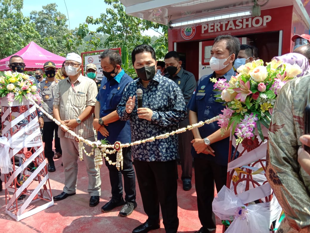 Setibanya di Bandara Tunggul Wulung, Menteri Badan Usaha Milik Negara Republik Indonesia beserta rombongan menuju Pondok Pesantren Nurul Qur’an Surusunda Karangpucung Cilacap untuk meresmikan Pertashop di Pondok Pesantren Nurul Qur’an Surusunda Kecamatan Karangpucung Kabupaten Cilacap. Dilokasi tersebut, Menteri beserta rombongan disambut Gubernur Jawa Tengah Ganjar Pranowo dan Habib Muhammad Lutfi Bin Ali Bin Yahya.
