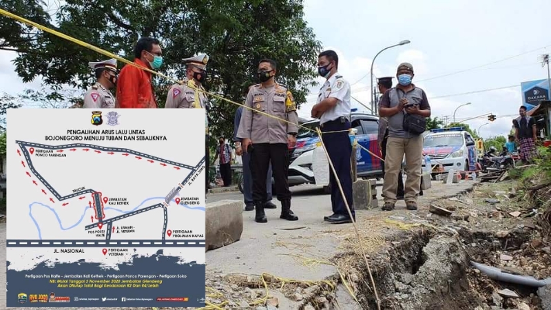 Akibat rusaknya Jembatan Glendeng (Penghubung Bojonegoro – Tuban), Sat Lantas Polres Bojonegoro melakukan Rekayasa Arus Lalu Lintas. Kendaraan R4 atau lebih yang akan menuju Tuban dialihkan melalui Jembatan Kaliketek menuju Soko melalui pertigaan Ponco (Kec. Parengan Kab.Tuban).