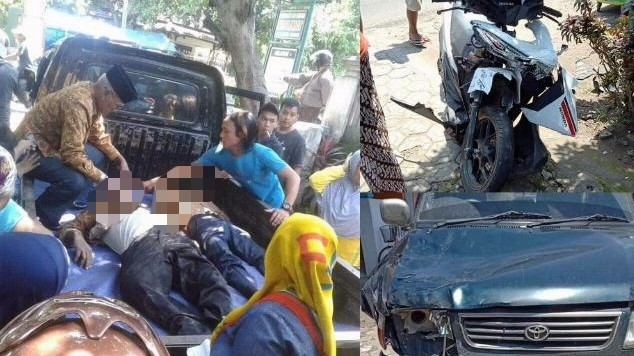 Begitu sampai lokasi kejadian, mobil Kijang mendahului sepeda motor yang berjalan searah didepannya, namun terlalu kekanan. Naas, dari arah berlawanan datang pengendara sepeda motor Honda Vario nopol S 3869 OK, yang berboncengan. Karena jarak kedua kendaraan sudah terlalu dekat, sehingga mobil Kijang langsung menabrak sepeda motor hingga ringsek.