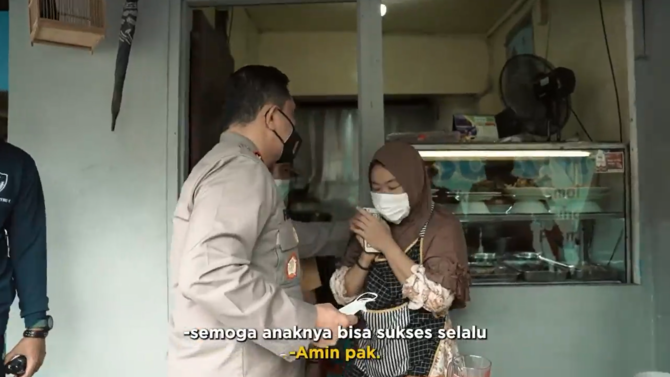 Bapak pemilik warung meminta agar Irjen Fadil dapat bersikap lebih tegas lagi. Sontak mendengar perintah tersebut, Fadil memberikan komando hormatnya.