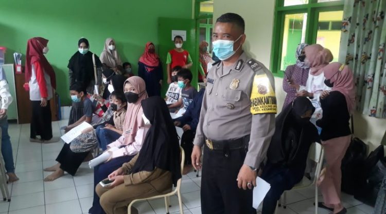 POLRES CIKO – Maspolin.id|| Bhabinkamtibmas desa kedung jaya Polsek Kedawung Polres Cirebon Kota Aiptu Kamaludin bersama Tim Gabungan , Jalin Kordinasi dengan Monitoring Giat Sunttik Vaksin bagi anak usia 6-12 tahun di SDT nursidiq . Upaya tersebut dalam pencgahan Virus Covid 19 dalam rangka Ops Yustisi Sabtu ( 15.01.2022 )