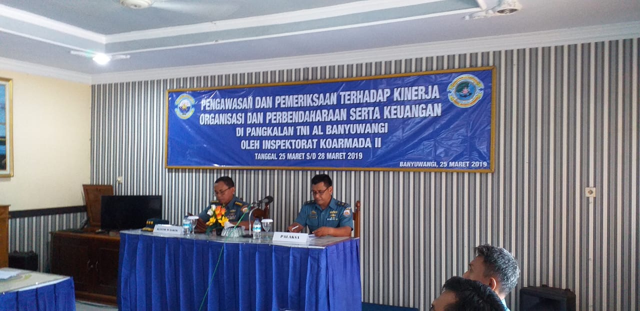 Lantamal V,Maspolin.id – Mulai hari ini, Senin (25/3), Pangkalan TNI Angkatan Laut (Lanal) Banyuwangi, Lantamal V, Koarmada ll mulai menjalani Pengawasan dan Pemeriksaan (Wasrik) Inspektorat Koarmada ll yang digelar di Rupat Mako Lanal Banyuwangi.