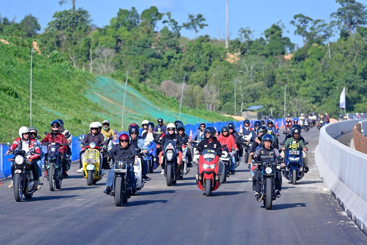 “Ya tadi mencoba jalan itu paling gampang kalau kita naik sepeda motor. Ada gini sedikit saja akan terasa. Dan tadi saya mengajak beliau-beliau ini semuanya naik motor merasakan jalan tol menuju IKN,” ujar Presiden dalam keterangannya kepada awak media di kawasan IKN.