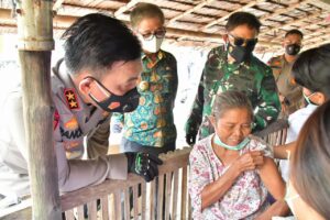 “Terima kasih Pak Kapolda dan Bapak Pangdam yang sudah datang membawa dokter ke desa kami ini untuk memberikan vaksin, terimakasih” ucap Ibu Lisani fau