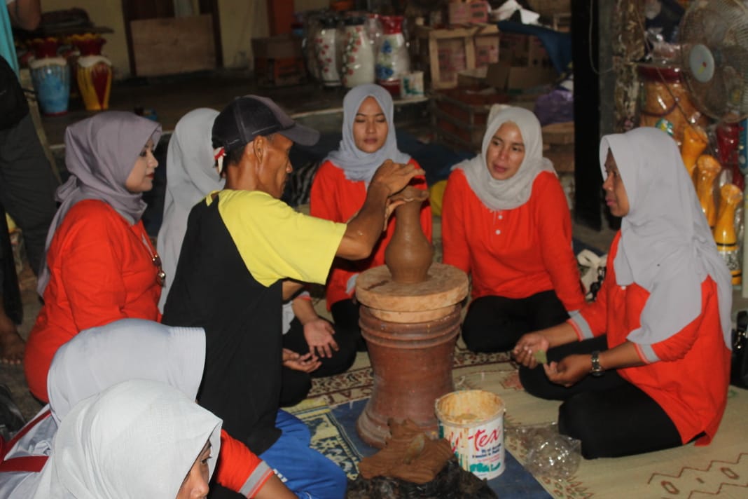 Kedatangan rombongan yang mengenakan seragam kaos lengan panjang warna oranye dengan kombinasi hijab warna perak dan celana panjang hitam itu, disambut hangat pemilik Rumah Gerabah, Taufik dan karyawannya.