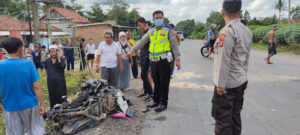 Lampung – Maspolin.id// Polres Tulang Bawang Unit Gakkum Satuan Lalu Lintas (Sat Lantas) Polres Tulang Bawang melakukan olah tempat kejadian perkara (TKP) peristiwa kecelakaan lalu lintas antara sepeda motor Honda Beat dengan sepeda motor Yamaha N Max.