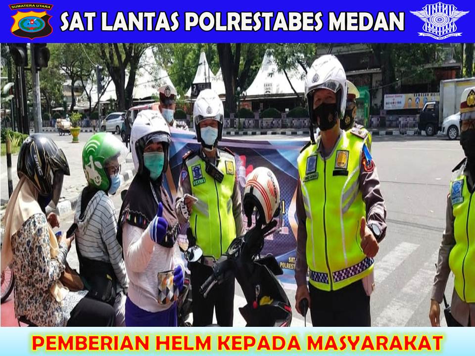 Bahkan petugas memberikan helm kepada masyarakat pengguna jalan yang patuh dan tertib dalam berlalu lintas.